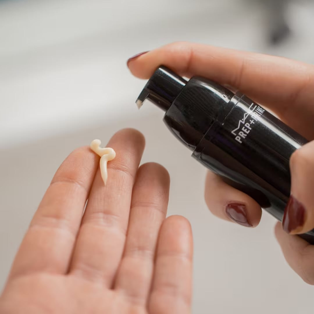Smooth primer evenly all over the face or to the desired areas after moisturizer, right before foundation with fingertips, sponge, or brush